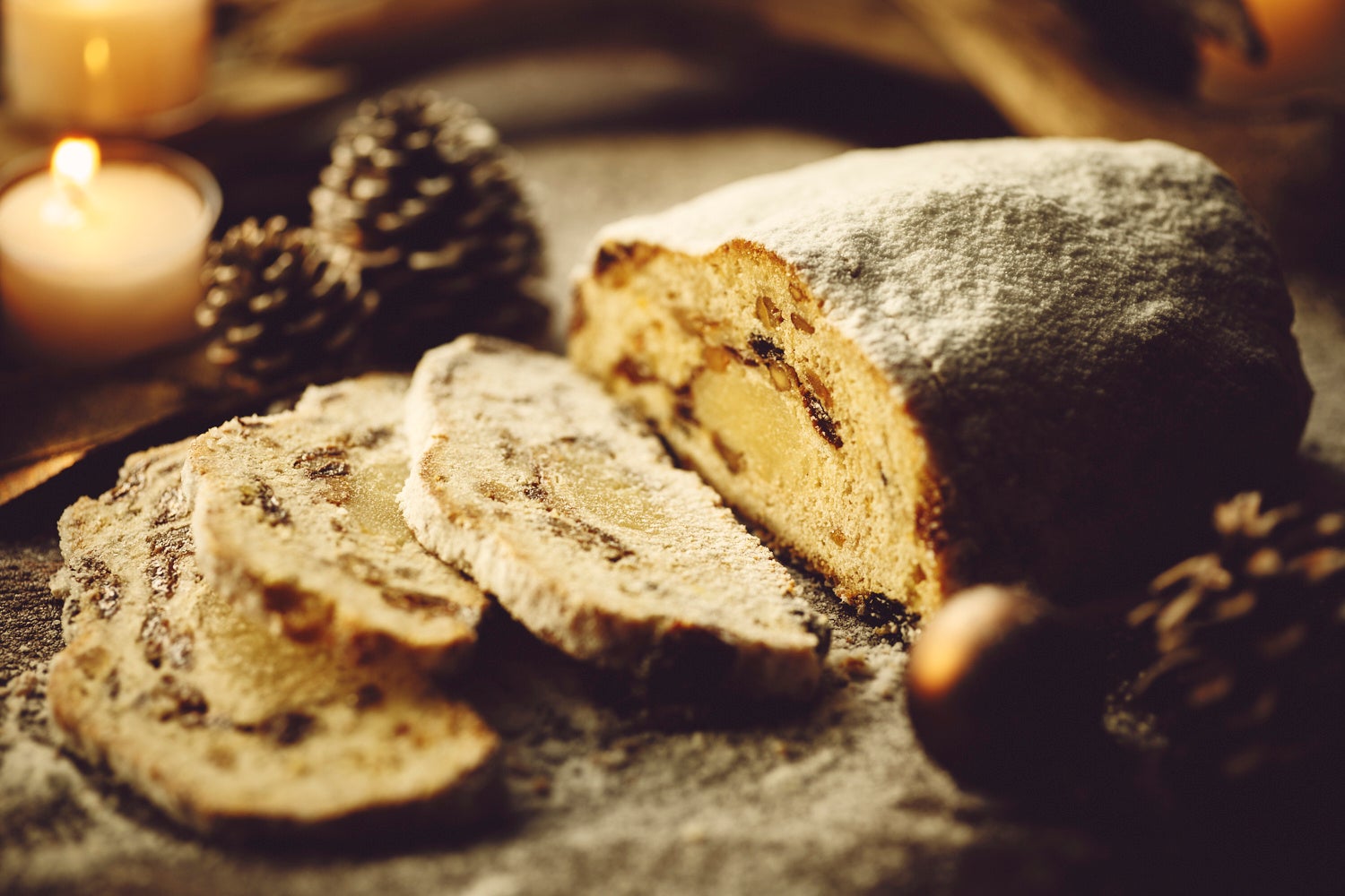 クリスマスを待ちわびながら、少しずつスライスして食べるドイツの伝統的なクリスマス菓子、シュトーレン。香り高い上質なラム酒にじっくりと漬け込んだ2種類のドライフルーツをはじめ、ローストしたナッツ類やイタリア産のピスタチオペースト、ドイツ産のマジパンを生地に混ぜ込みました。加えてアーモンドを粉砕し生地に練りこむことでフレッシュさも融合した、ナッティーな香りが広がるこだわりのシュトーレンです。日を追うごとに深まる味わいを楽しめる、クリスマスギフトとしても最適な一品です。
