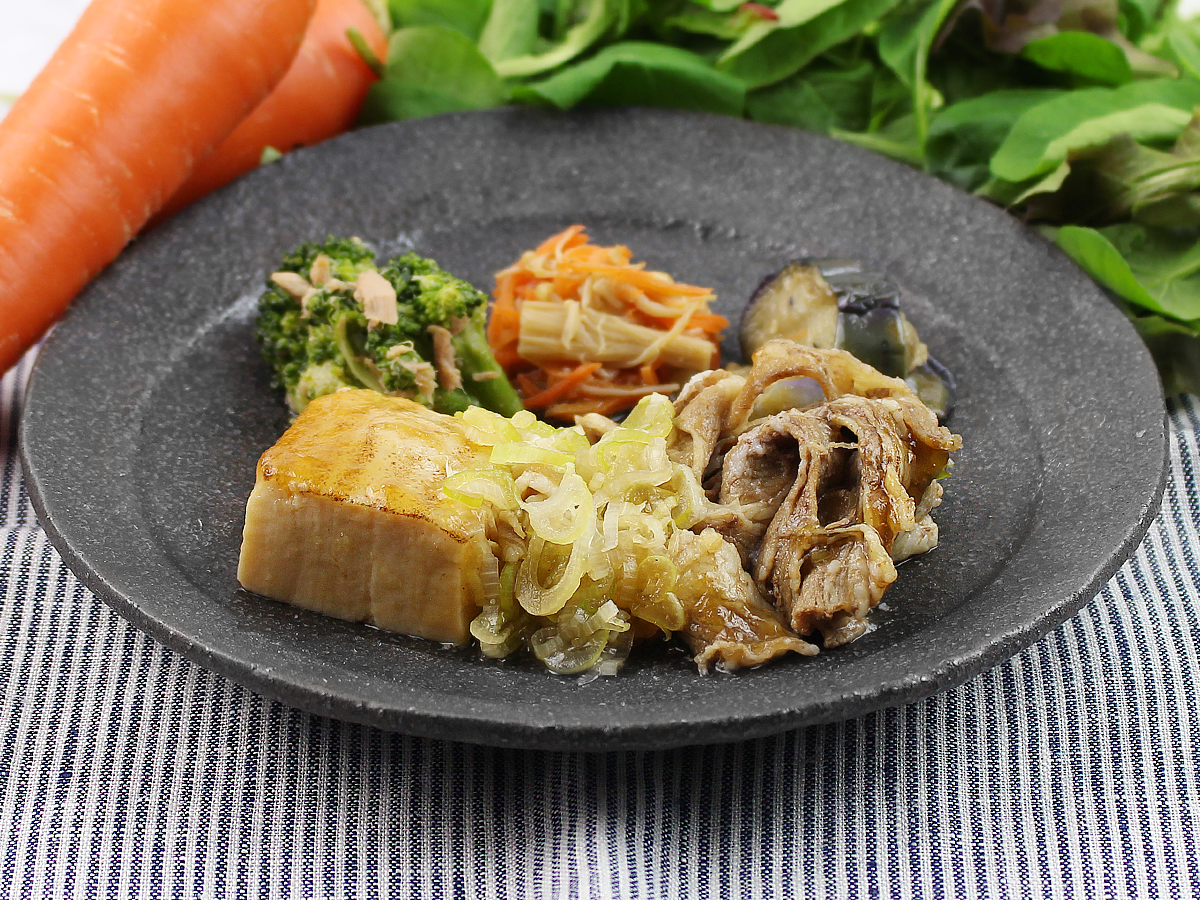 副菜は、ブロッコリーのツナあえ、えのきのごまぽん酢、茄子の味噌あえです。
