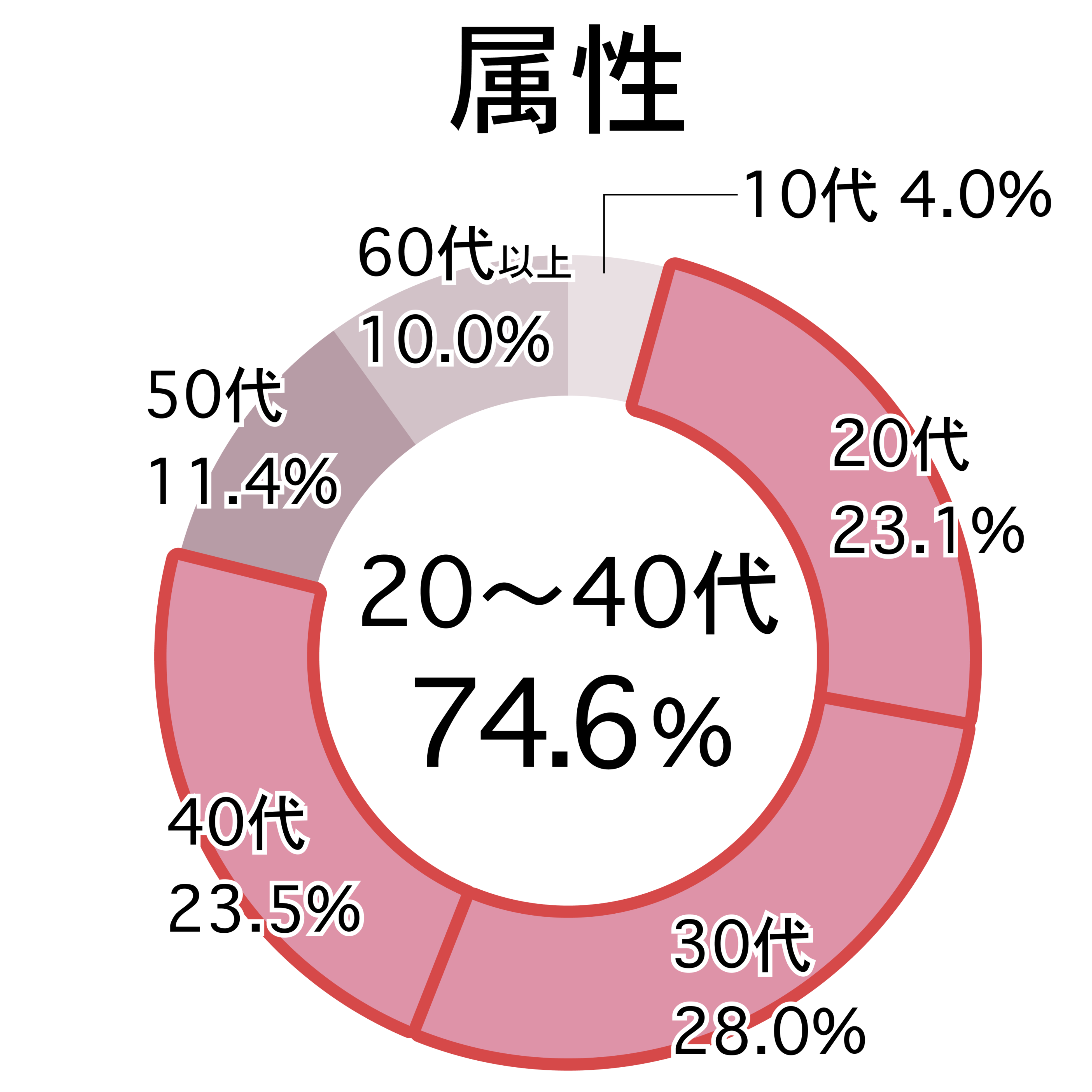 20代〜40代の、働く世代や子育て世代が全体の74.6%を占めています。