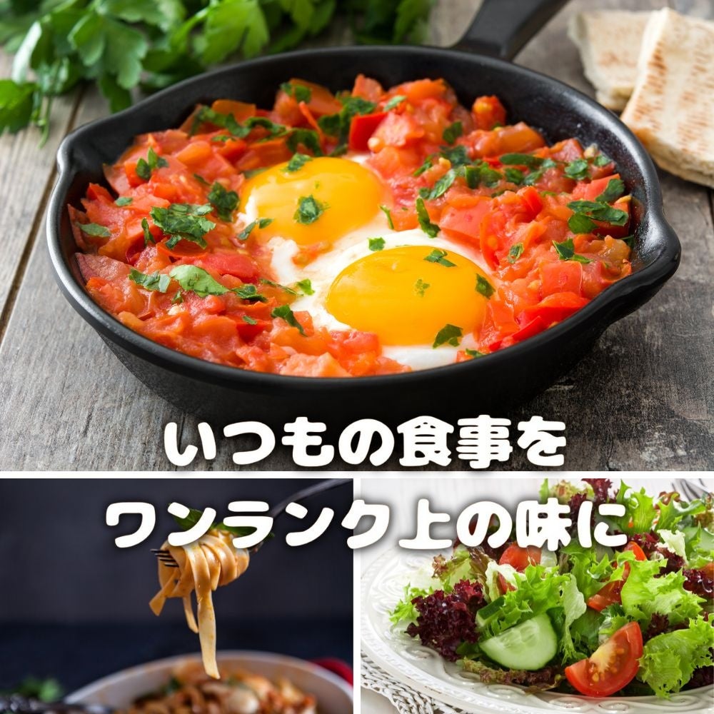 肉料理はもちろん、卵料理やサラダ、スパゲッティなど様々なお料理に一振りするだけ。