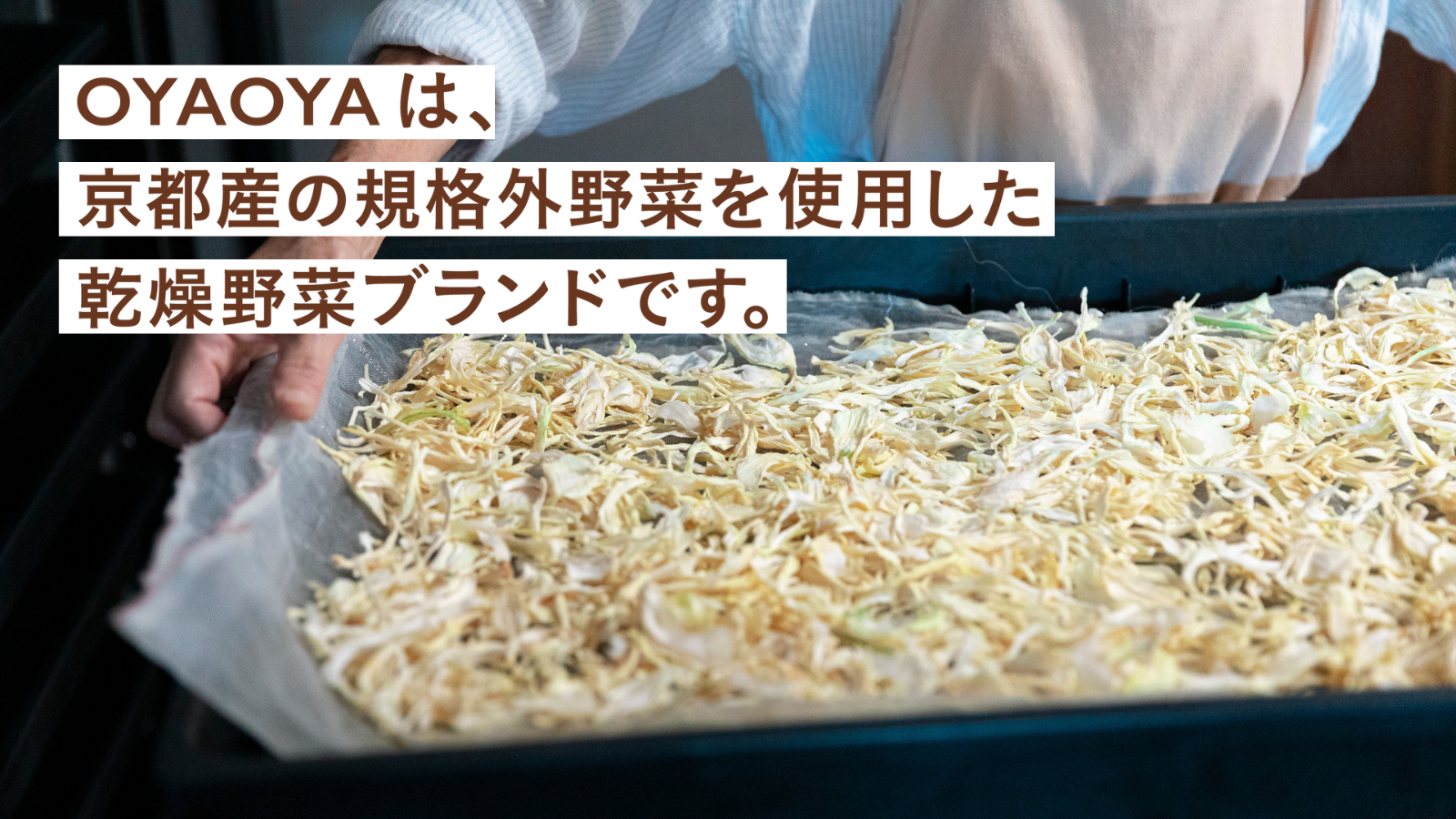 OYAOYAは行き場のない野菜に価値を付けることで、食品ロスの削減と農業の存続に向き合う、京都発の新しい乾燥野菜ブランドです。