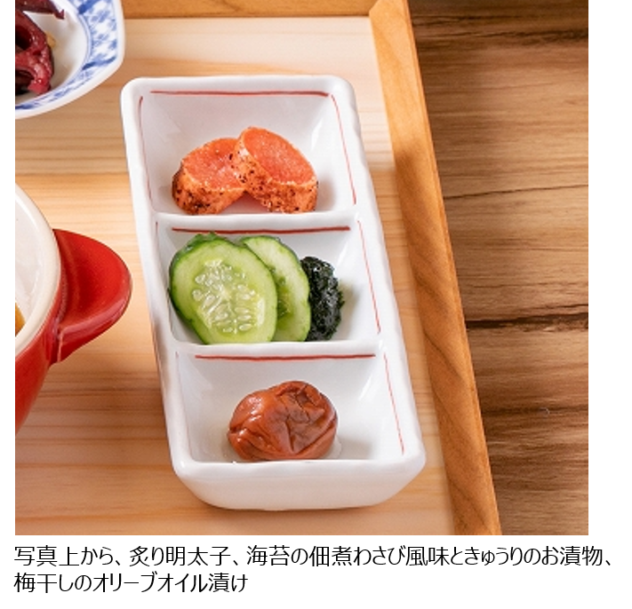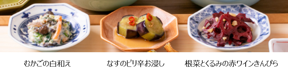 ごはんのおいしさを引き立たせるおかず豆皿3種も旬の食材を使用しています。