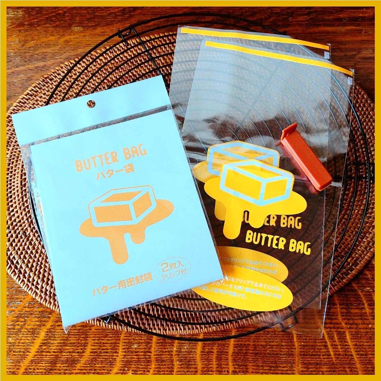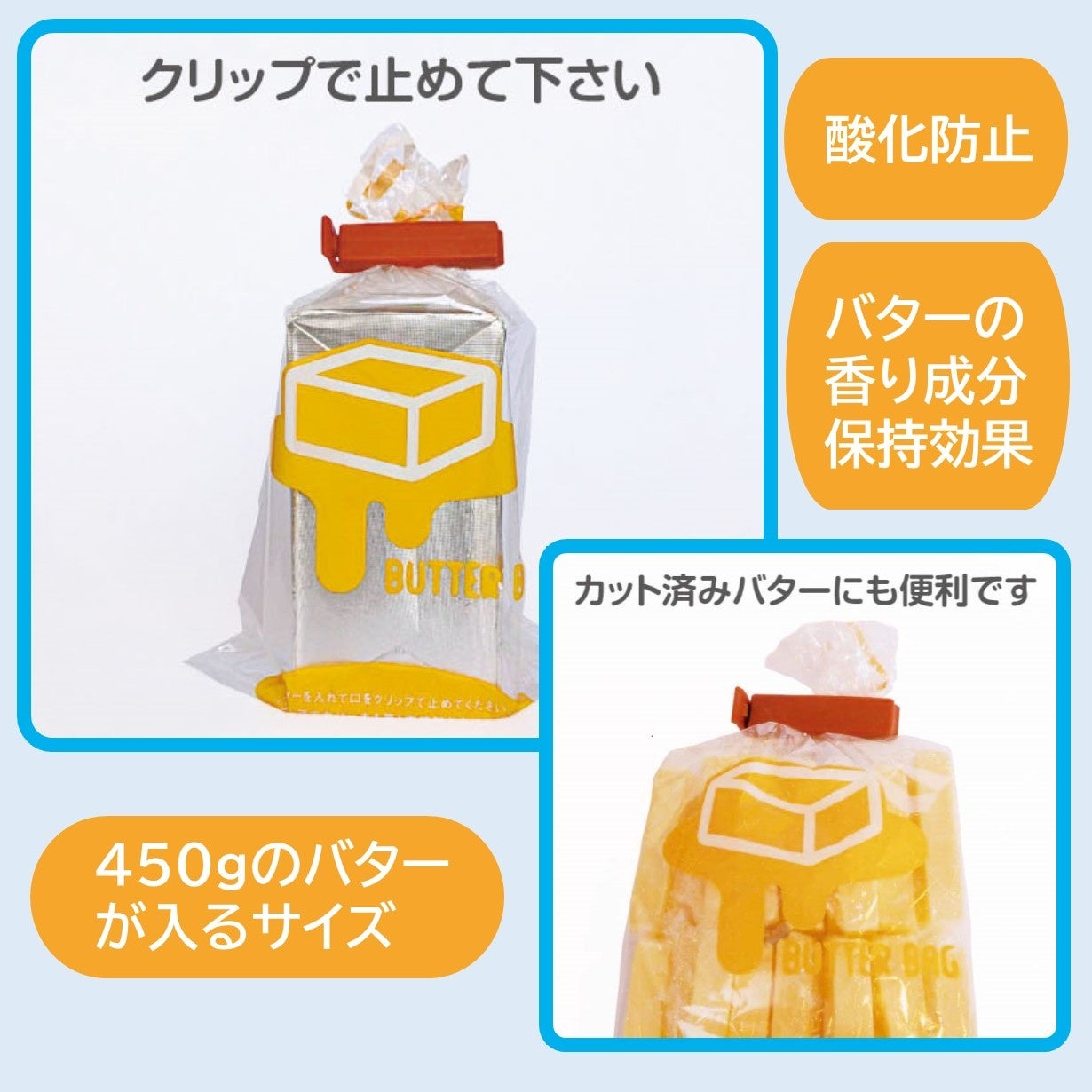 <内容> バター保存袋2枚+クリップ1個付属