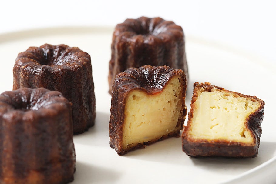 表面はカリッと、中は驚くほどしっとり。バニラ感と、”濡れ”食感をお楽しみいただけるカヌレです。さらに隠し味のマスカルポーネチーズがコクと濃厚さをプラスしています。カヌレの魅力でもある、2種類の食感とラム酒の香り、じっくりと高温で焼き上げることによる香ばしさをぜひご堪能ください。