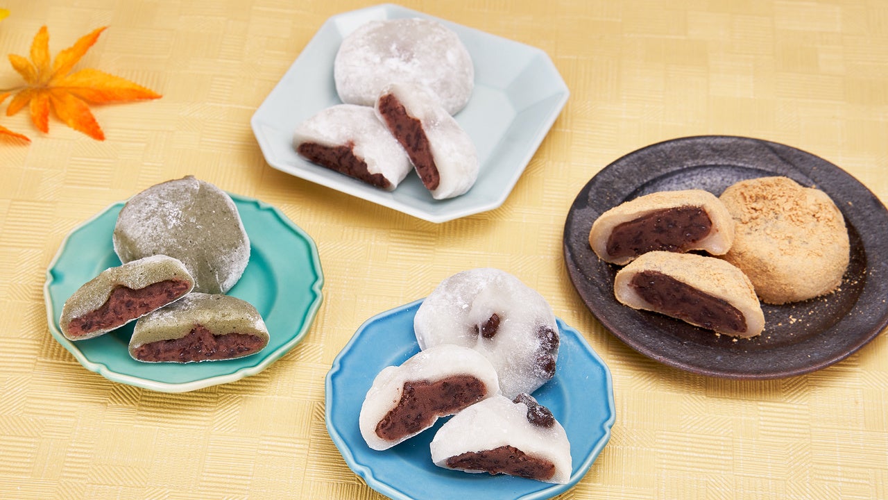 大福(粒餡)・草大福(粒餡)・黒胡麻大福(粒餡)・栗あん大福・芋あん大福が入っています。