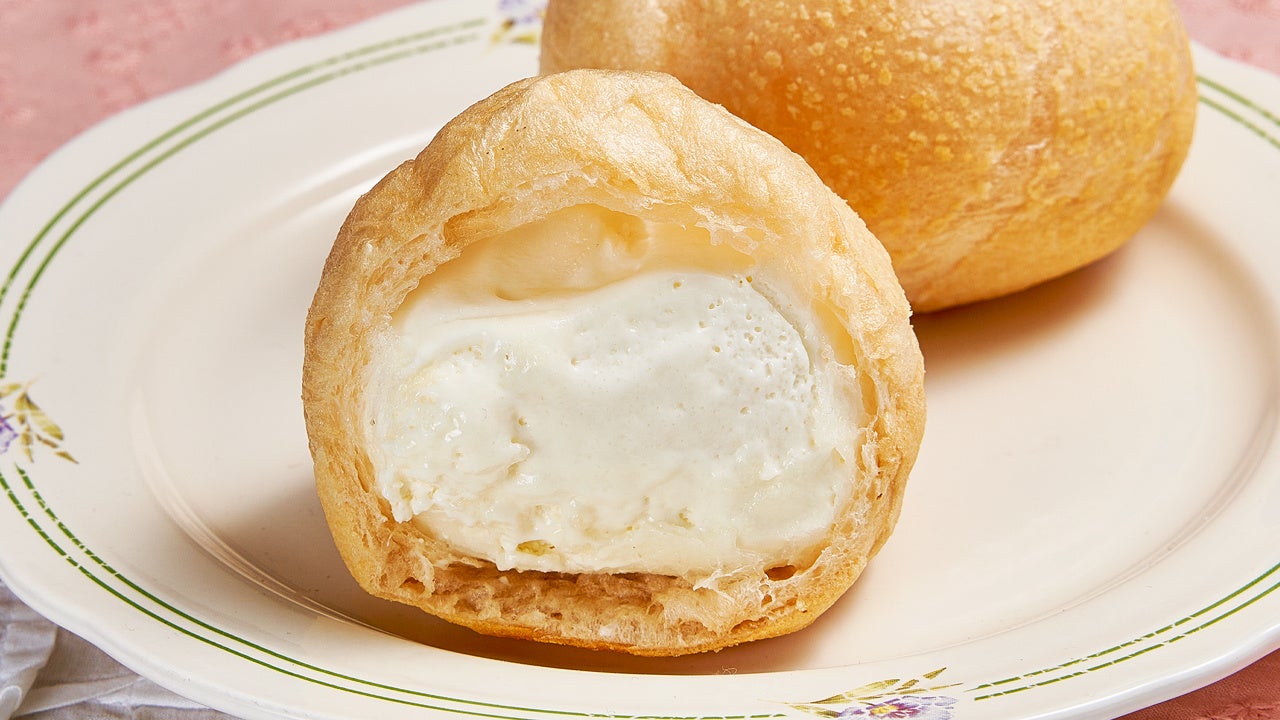 もちもち食感のシュー生地に、酸味と甘さのバランスの良いチーズクリームを入れました。