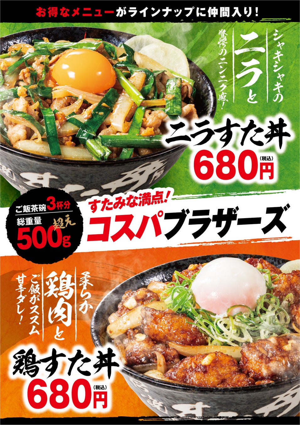 使用し、ボリュームと価格のコストパフォーマンスを表現したニラすた丼・鶏すた丼を新規に