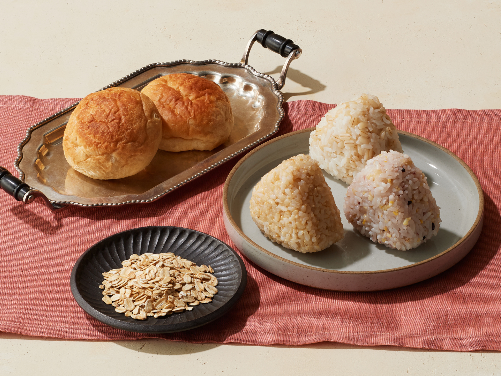 スープやサラダと一緒に食べておいしさも満足感もアップする主食メニューも一緒にご注文いただけるようになりました。もっちりした「オーツ麦ブレッド」、食物繊維豊富な「オートミール」、和食と相性抜群な「おにぎり」からお選びいただけます。