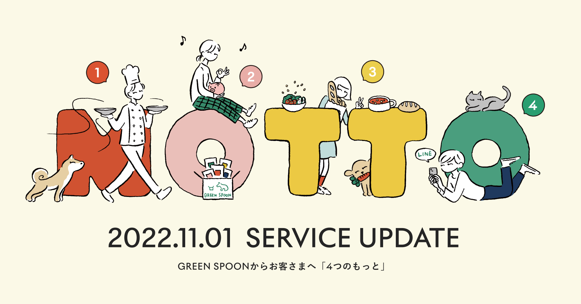 “自分を好きでいつづけられる人生を。”をビジョンに掲げ、あなたに必要な野菜が無添加*のスープ、サラダ、スムージーになって自宅に届く、ベジタブル・ワンステップミール「GREEN SPOON」は、2022年11月1日(火)より、4つのアップデートを実施いたします。
