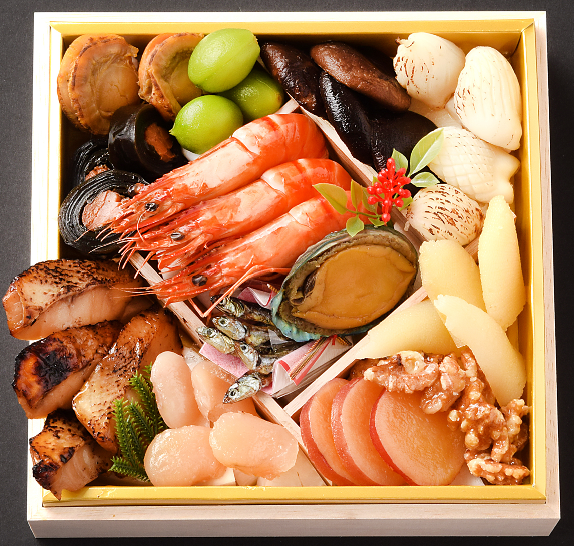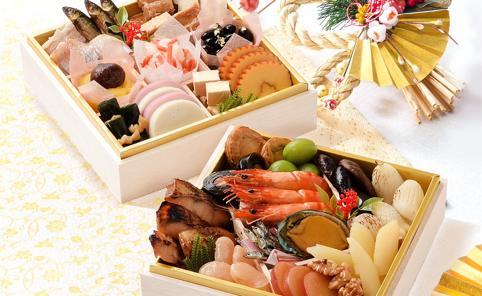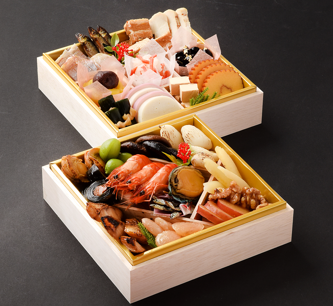 おせちの定番商品をはじめとする(※)無添加素材の26品目を二段重に盛り合わせました。