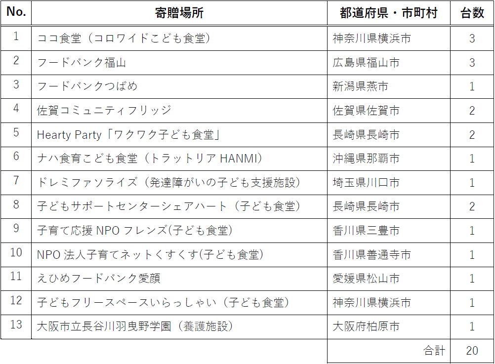 【ガリレイ1%クラブ 2022年度上半期 冷蔵庫寄贈実績】