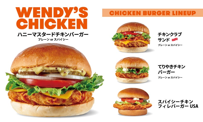 ウェンディーズ・ジャパン株式会社(代表取締役:紫関修 所在地:東京都新宿区)では、 11月2日(水)から、ウェンディーズ・ファーストキッチン全店で、スパイシーてりやきチキンバー ガーなど3種類の新たなスパイシーチキンバーガーを販売します。9月に発売したチキンバーガーが 大変ご好評をいただいていることから、お客様にさらにお楽しみいただくためにラインナップを充実さ せます。ウェンディーズ・ファーストキッチンのチキンバーガーは、本国アメリカのウェンディーズで長く愛されてきたオリジナルのチキンフィレを使用しています。新商品は、カリッとした衣とやわらかくジュー シーなむね肉を、複数のスパイスで味付けし、うまみと辛さがやみつきになるスパイシーチキンフィレ に仕上げました。この機会にぜひご堪能ください!