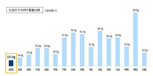 PETボトルの構造を変更し、従来より20%軽量化(プラスチック使用量削減)したボトルに順次入れ替え、2020年4月現在全水源の97%で軽量化を実施済みです。