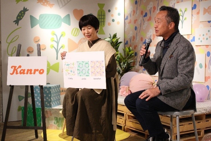 創業110周年を記念しメディア向けに行われた「カンロ 創業110周年事業発表会」では、社長の三須より各施策についての発表を行なったほか、カンロちゃんのデザイン、そして今回の110周年を記念したグラフィックデザインも手がけたデザイナーのセキユリヲさんにもご登壇いただき、トークセッションを行いました。