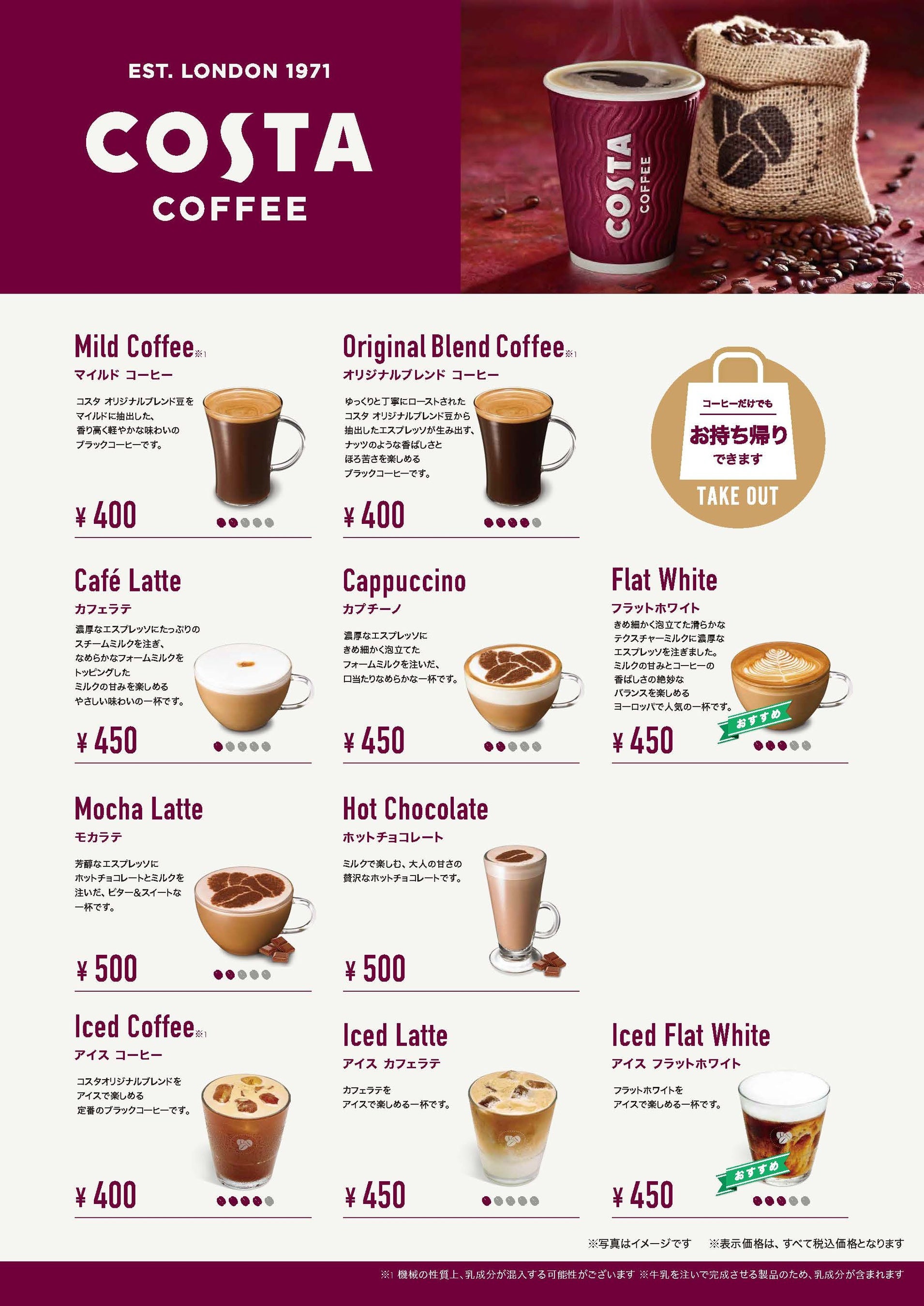 ※COSTAとコスタはCosta Liimitedの登録商標です。