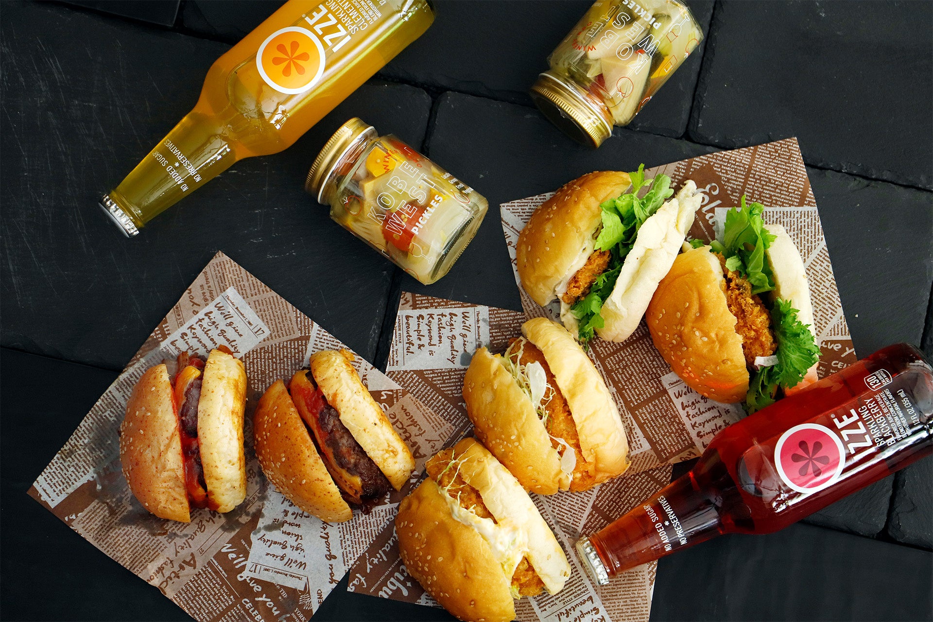チーズバーガーは100%牛肉を使用したパティを使い、エビカツとサバカツはグループ会社のキャッスルホテル(明石市)から一次加工したものを調達しており、いずれも美味しさを追求しています。