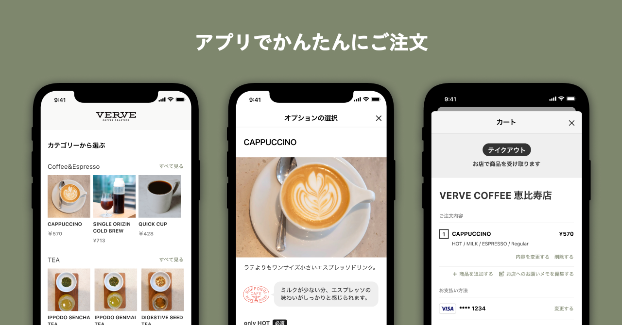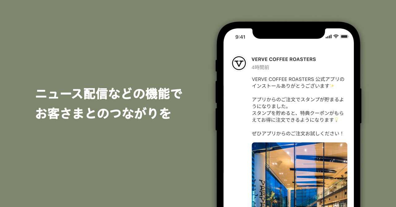 11月8日、恵比寿ガーデンプレイスセンタープラザ内にオープンする「VERVE COFFEE ROASTERS」で、当社のAll in Oneモバイルオーダーアプリが初導入されました。アプリ導入により、じっくり時間をかけて抽出したこだわりの一杯も、店頭でお客様をお待たせさせずに提供でき、さらに顧客とダイレクトにつながることで、より効率的な顧客管理、マーケティングが可能になります。テイクアウト、デリバリー、イートインすべての注文チャネルの注文から決済、顧客管理までを一括管理でき、業務効率化によって、接客や調理により集中できる環境を整えながら、顧客満足度やロイヤリティを向上させるDXを実現します。