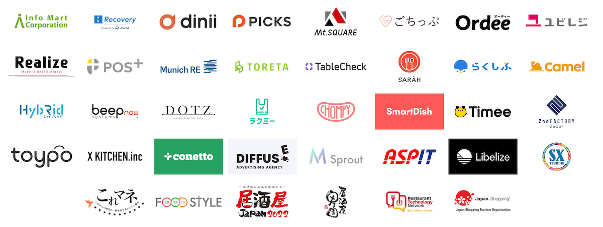 2022年11月時点で、賛助会員含む協力団体38社のご協力のもと、日本最大のレストランテックコミュニティを形成しています。