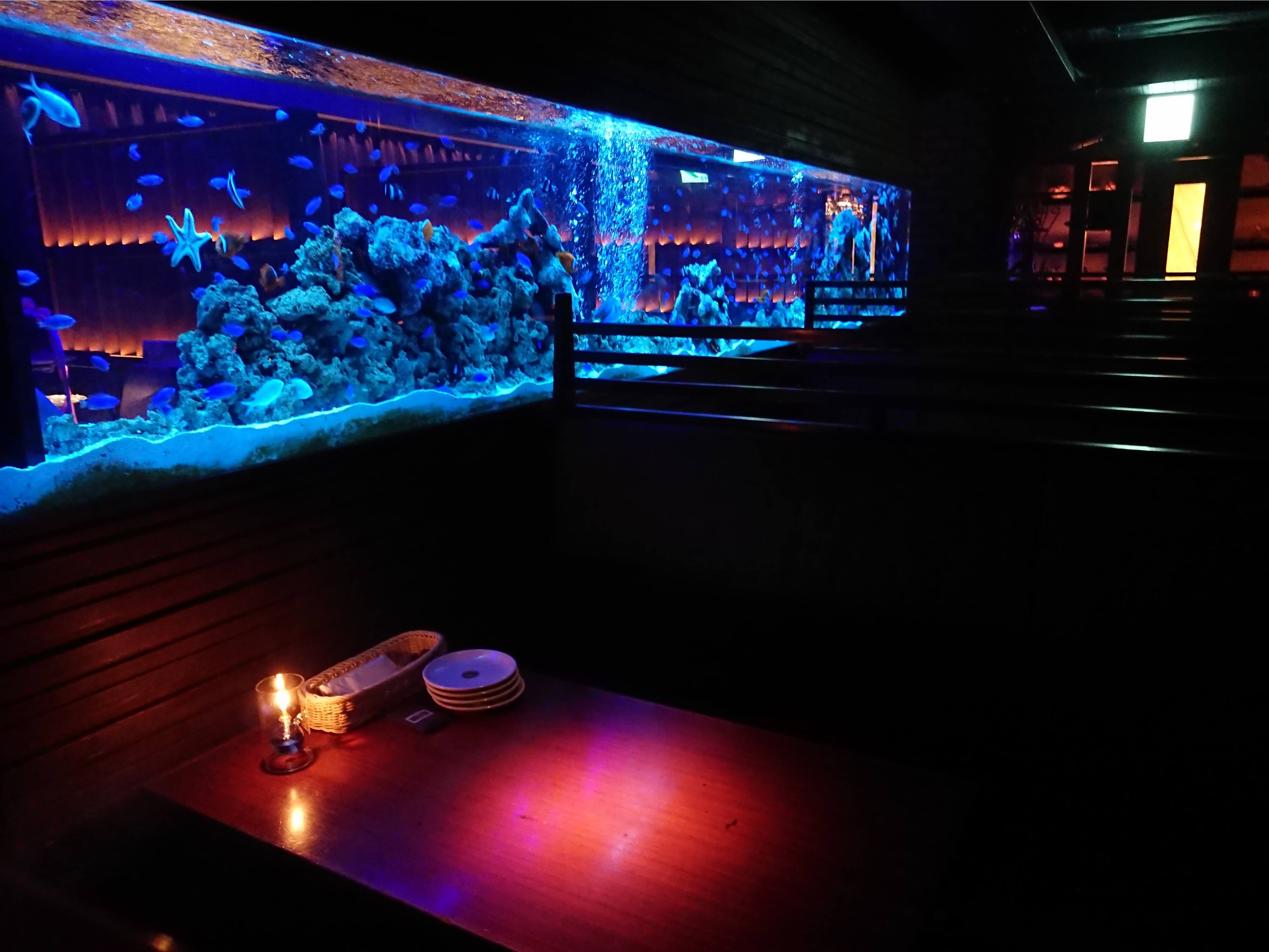 - 2人の距離が縮まる幻想的アクアリウム空間~2000匹の熱帯魚が優雅に泳ぐ店内