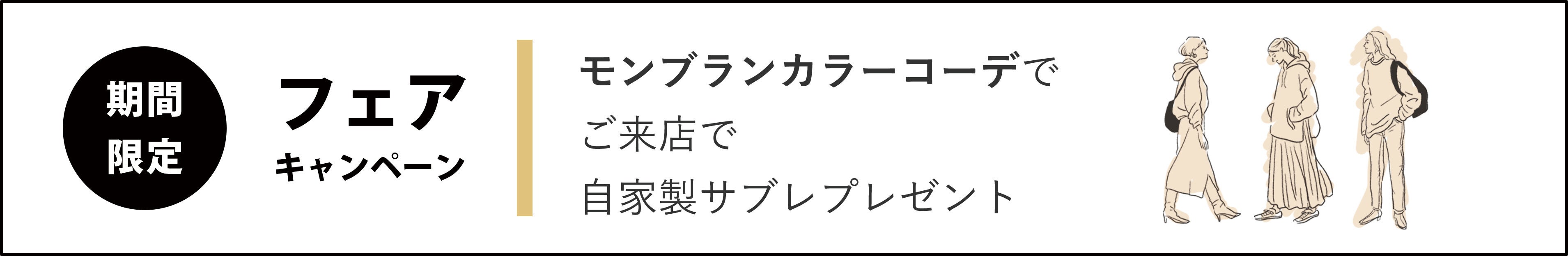 2022年11月2日(水)〜11月30日(水)迄の期間中、モンブランカラーコーデでご来店された方に、自家製サブレプレゼントをしています。