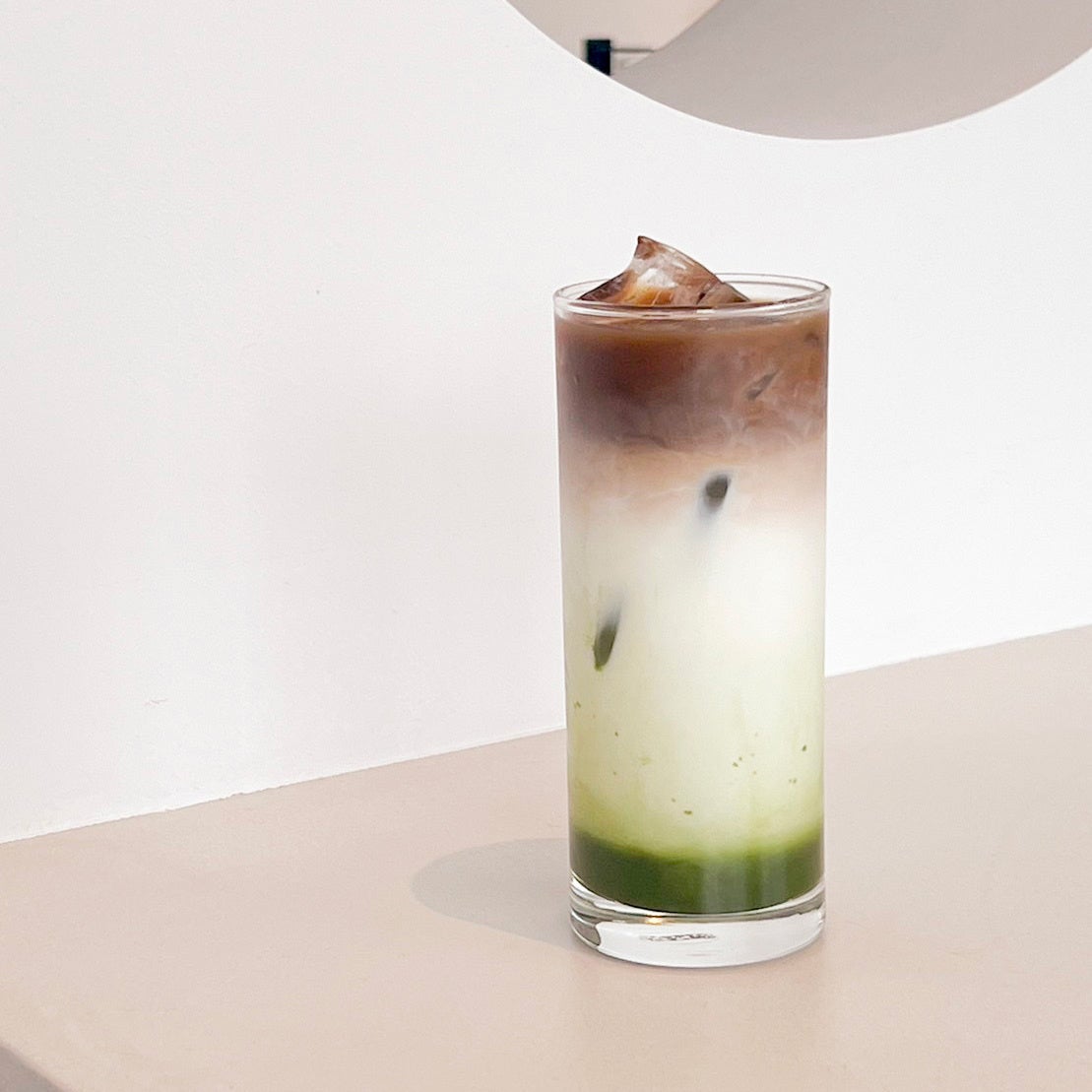 コーヒーとミルクに抹茶が加わった新感覚のコーヒーラテ。3層からなるおしゃれな見た目、混ぜる瞬間も美しく、苦味と甘味と深いコク、実はとっても相性抜群の組み合わせとなっています。
