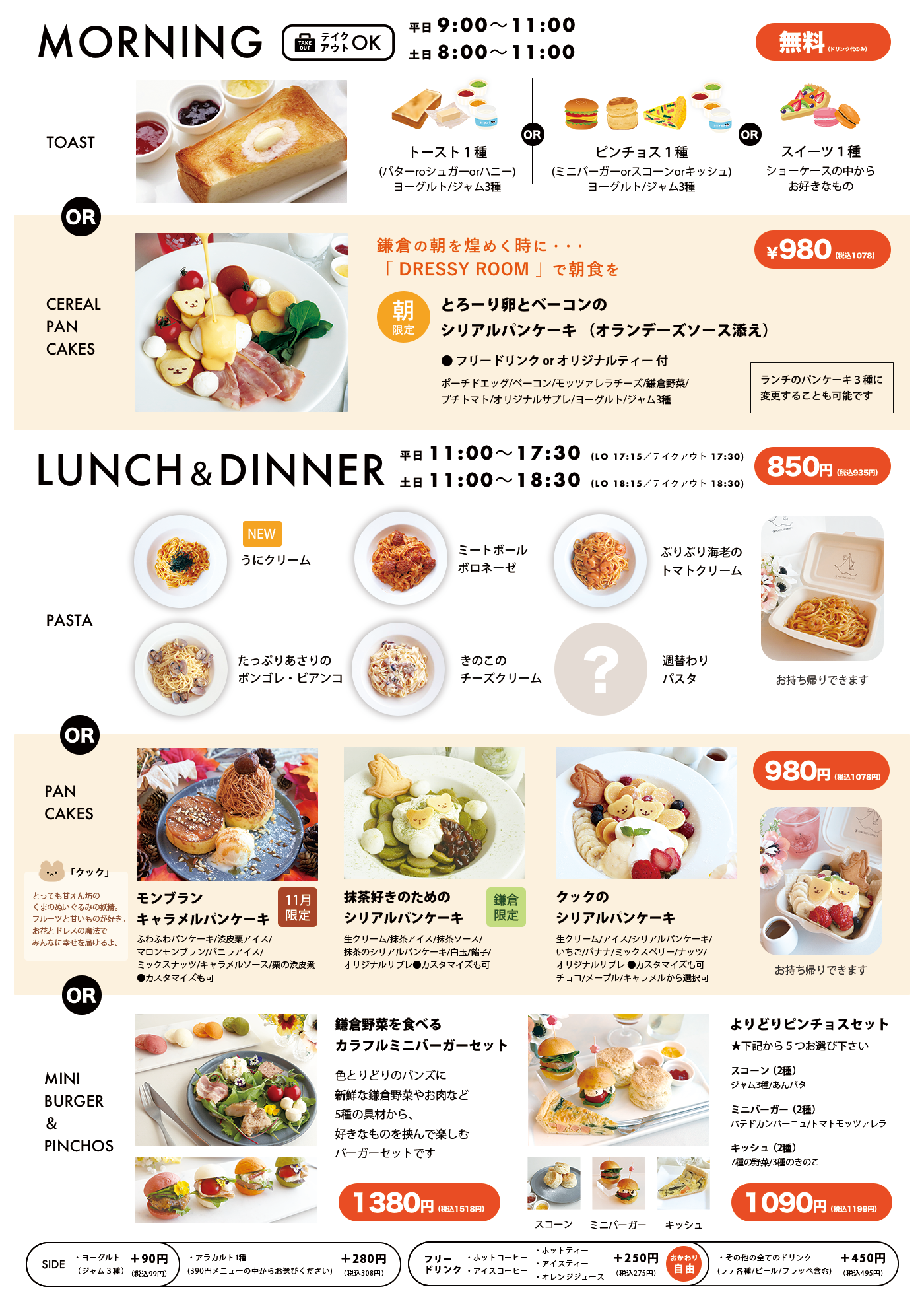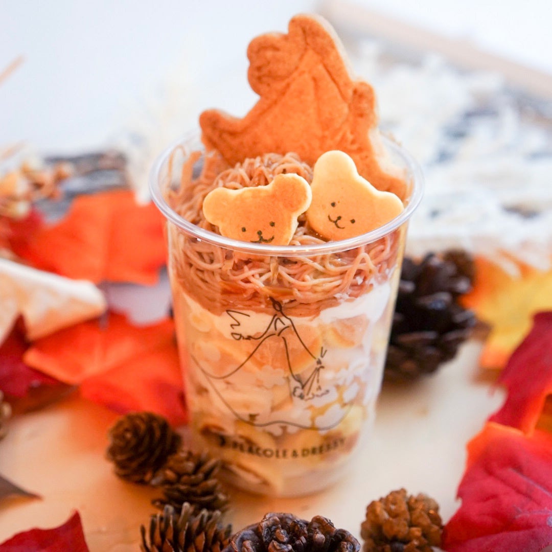 テイクアウトにおすすめ!シリアルパンケーキを使用した見た目も可愛らしいパフェにもモンブランフェア限定メニューが登場!なめらかな舌触りのモンブランに食べやすい大きさのシリアルパンケーキ、栗とナッツのハーモニーが絶妙!お持ち帰りスイーツを手に、紅葉が深まる鎌倉観光や神社めぐりなど鎌倉散歩を楽しんでみませんか?くまの妖精「クック」のパンケーキとドレスサブレのトッピングがポイントです。