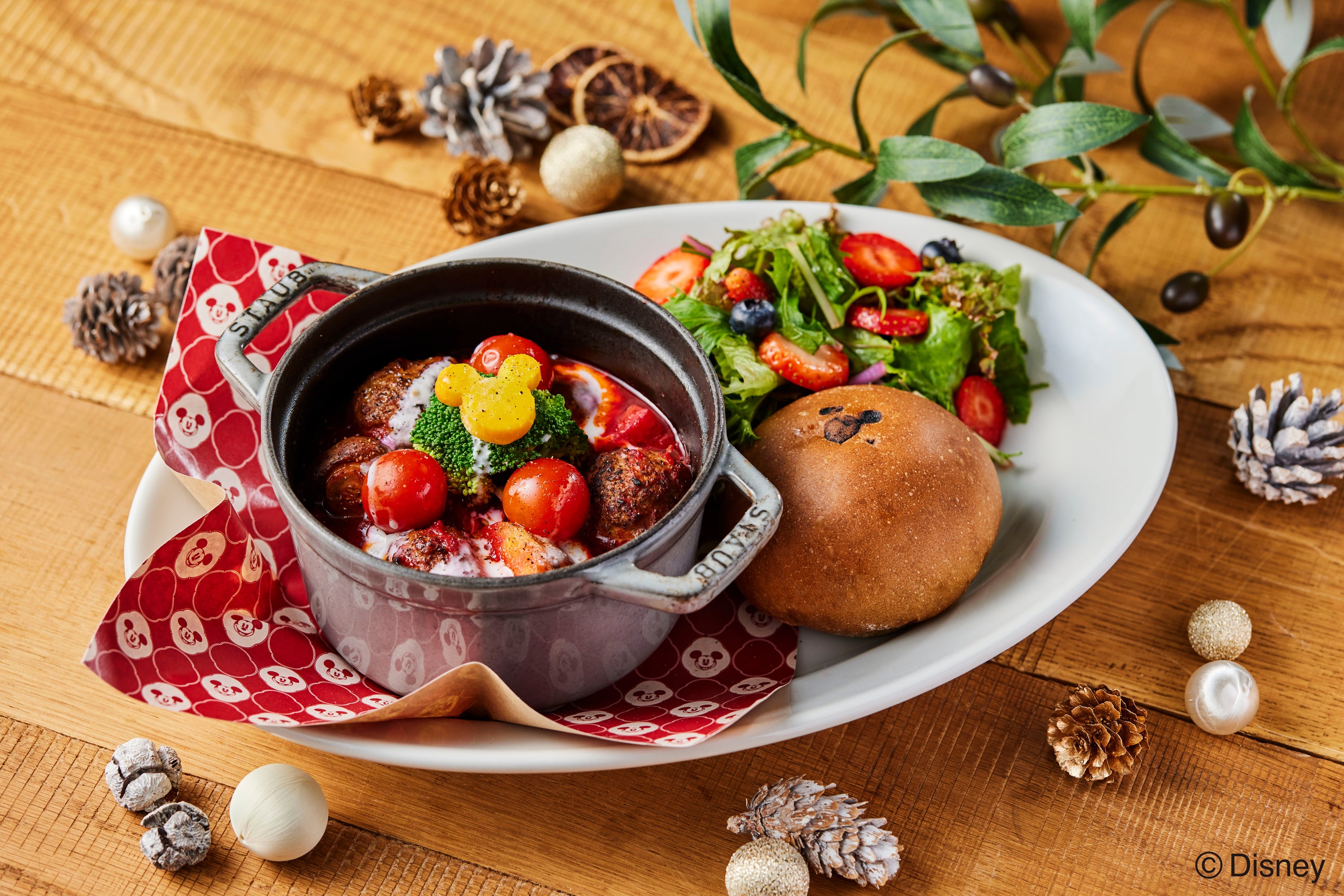 オープン以来当店の人気No.1メニュー「アフタヌーン ティーパーティー」がクリスマス限定バーションとして登場し、ご注文いただいた方には、今年のクリスマスの為にデザインしたオリジナル・クリスマスカード(非売品)を数量限定でプレゼントいたします。その他にも、寒い冬にぴったりな「ミートボールとごろごろお野菜のシチュープレート」をはじめ、豆乳ココアのムースに赤い果実とハート型のソースをあしらった「ベリー&ココアのMiss Sweetムース 〜 Minnie Style 〜」、甘酒と豆乳で仕上げたあったかココアとラズベリーピューレの上にドットをトッピングした「Berry Dotショコラータ」などホリデー気分を盛り上げるメニューをご用意いたします。