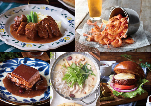 *冷凍食品(予定):ババ・ガンプ・シュリンプ「シュリンパーズネットキャッチ」(米)/「国産牛ほほ肉のマルサラ煮込み」(中)/フージンツリー「豚バラ肉の角煮 棗とハイビスカスソース」(台湾)/「USプライムビーフモッツァレラチーズバーガー(米)/「白湯火鍋スープ」(中)