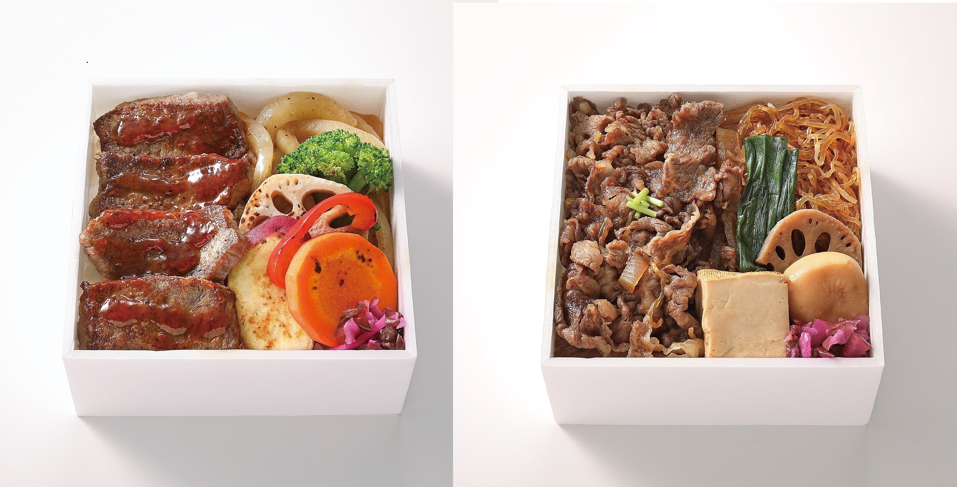 <三嶋亭>「すき焼き・焼肉ペア丼」(13.3㎝角、高さ5.6㎝、2段)2,400円