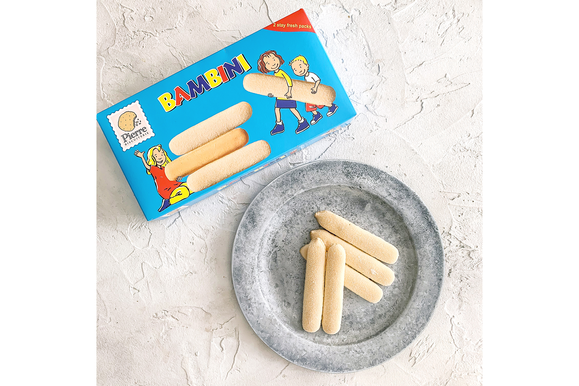 フランス生まれの優しい甘さのバンビーニは、軽くて繊細なフィンガービスケット。カリっとした表面にお砂糖がぱらり。そのままでも美味しく召し上がっていただけますが、お菓子作りの材料として多くの方に楽しんでいただいているロングセラーのアイテムです。砂糖・小麦粉・卵など、とてもシンプルな原料で作られているだけでなく、アニマルウェルフェアの観点から卵はケージフリーのものが使用されています。