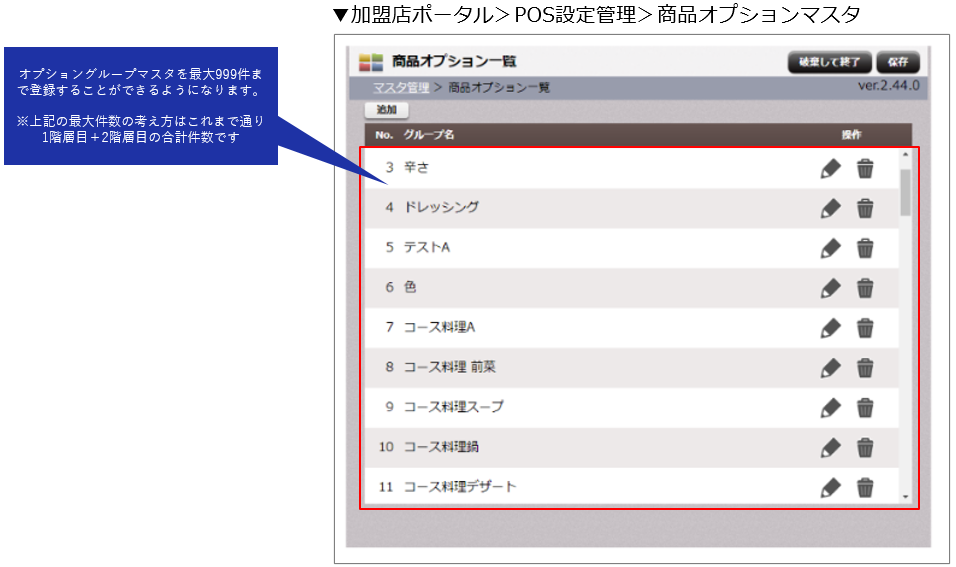 商品オプショングループを最大999件まで作成できるように拡張しました。(拡張前は最大99件)