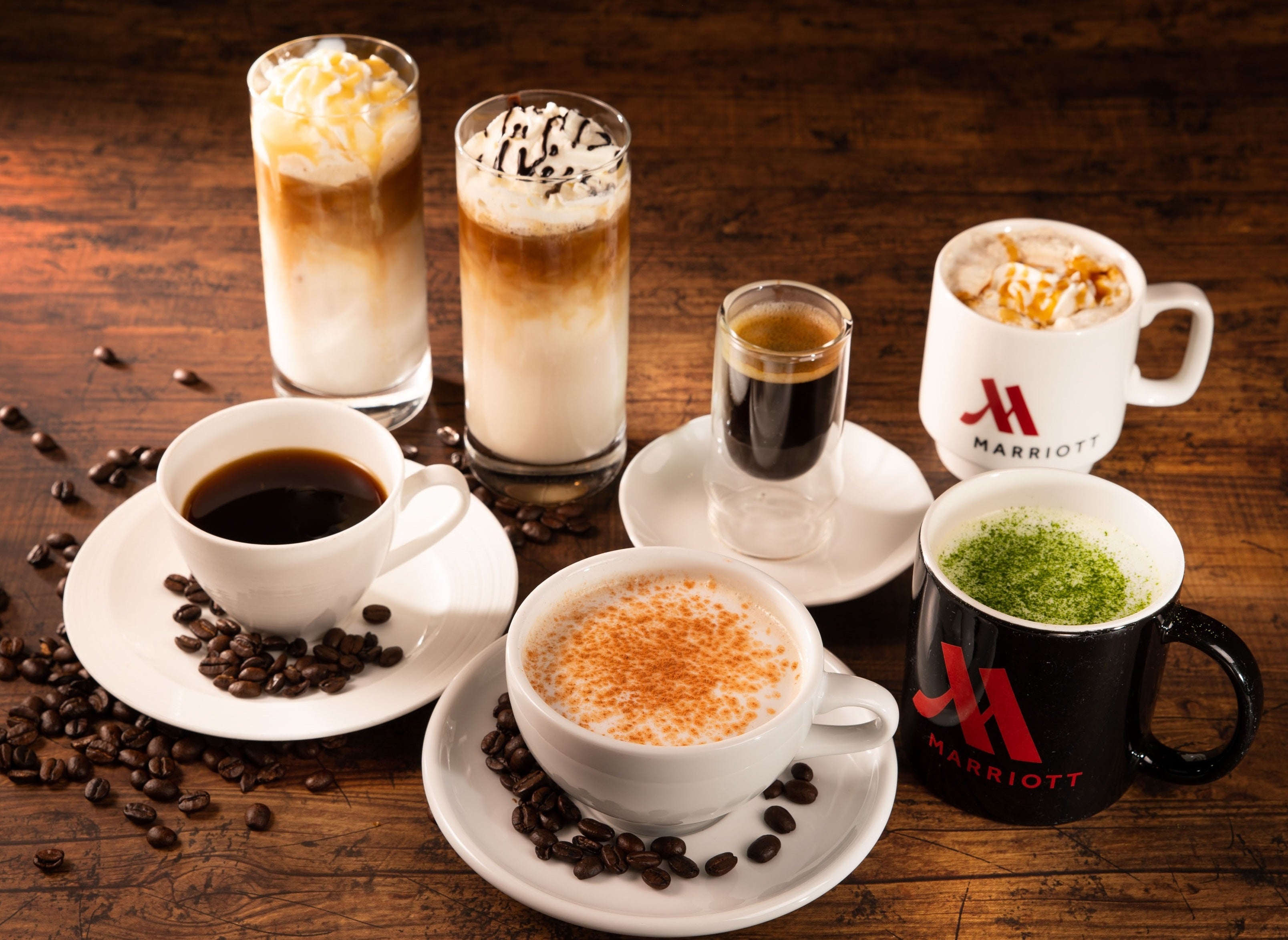 香り高いコーヒーやエスプレッソをはじめ、クリームたっぷりのカフェモカにホワイトモカ、温かいキャラメルラテや抹茶ラテなどバリエーション豊富なメニューをスタッフがその場で作ります。