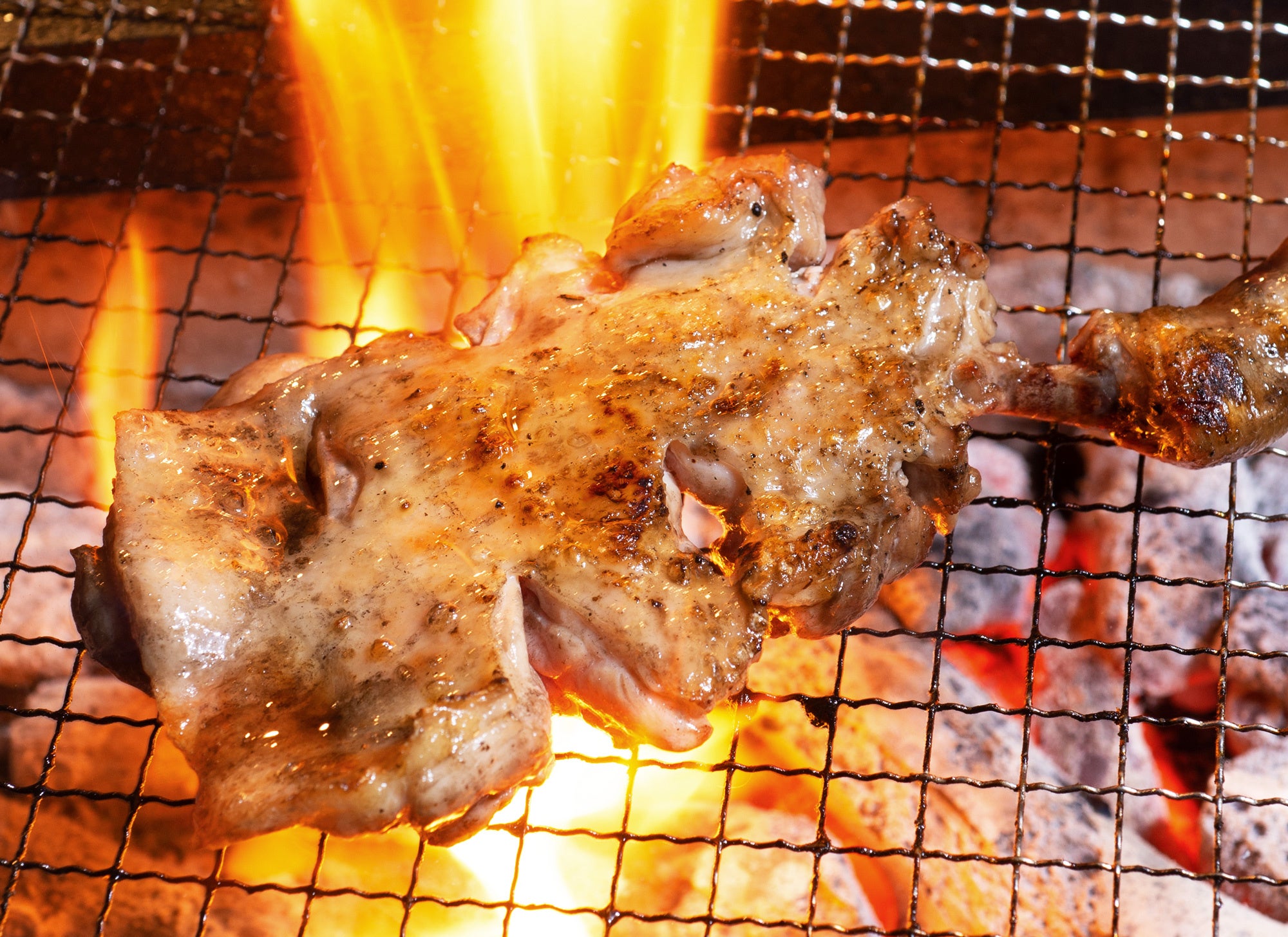 ■自慢のカドクラ名物!国産骨付き 鶏ももの炭火焼(塩胡椒・黒ダレ・赤ダレ)…各1,078円(税込)