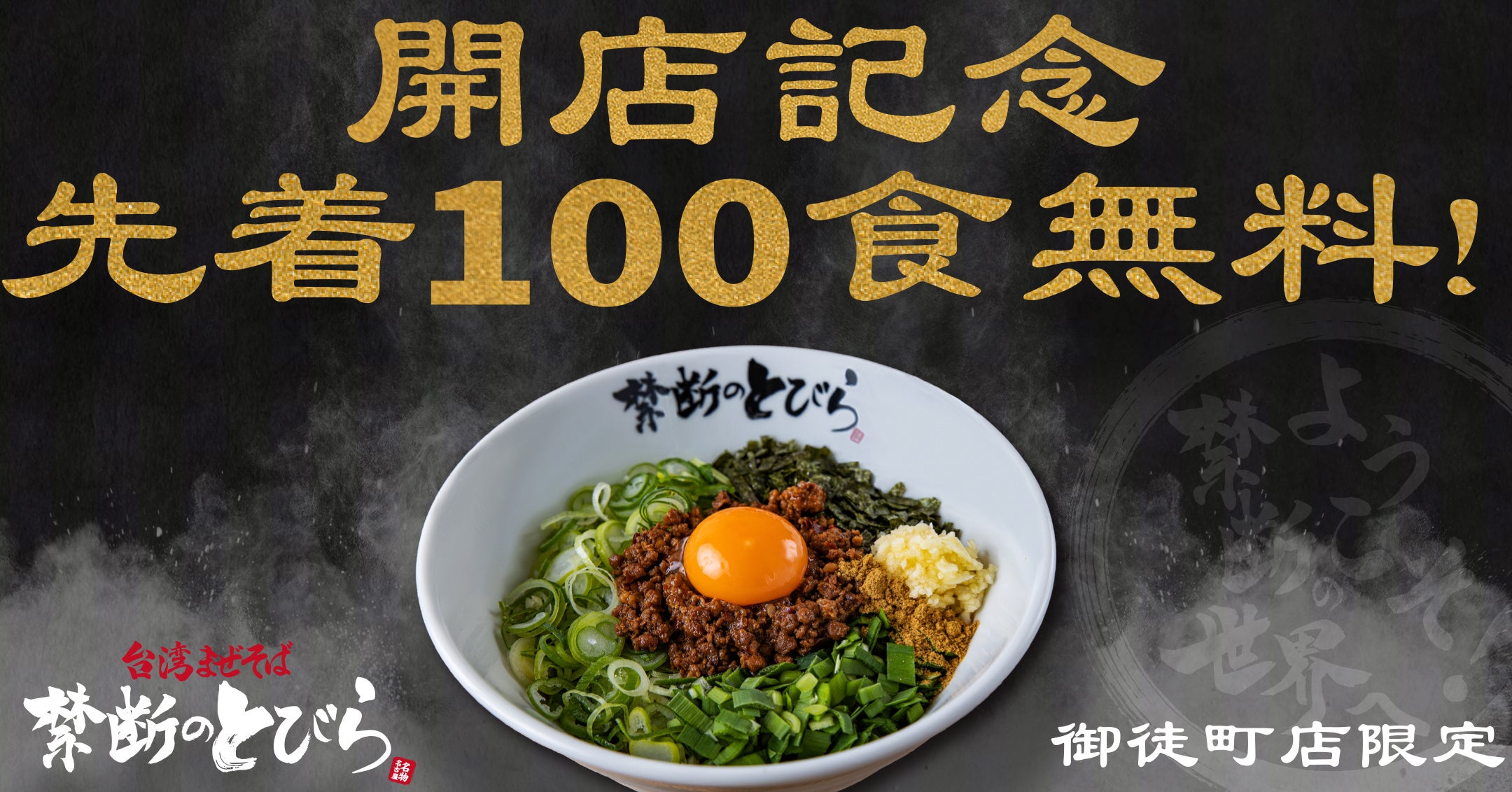 「禁断のとびら」御徒町店のオープンを記念して、11月5日(土)限定で先着100食限定で台湾まぜそばを一杯無料でご提供いたします。