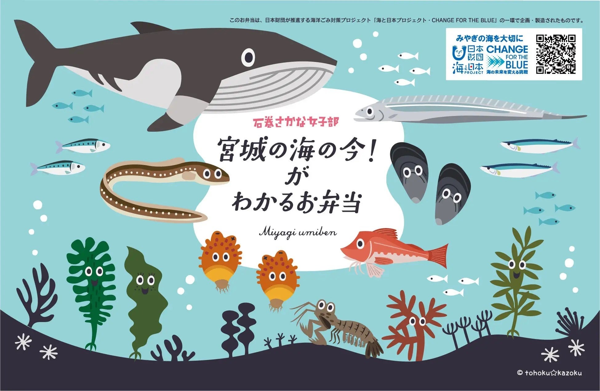 日本財団「CHANGE FOR THE BLUE」事業を進める宮城海ごみプロジェクト実行委員会(事務局:khb東日本放送)は、海と日本プロジェクトの趣旨に賛同する石巻さかな女子部(合同会社よあけのてがみ)とともに、「宮城の海の今がわかる!お弁当」を企画開発し、10月16日の明治安田生命J2リーグ・ベガルタ仙台のホームゲームにて限定販売しました。この取り組みは、日本財団が推進する海洋ごみ対策プロジェクト「海と日本プロジェクト・CHANGE FOR THE BLUE」の一環で実施したものです。