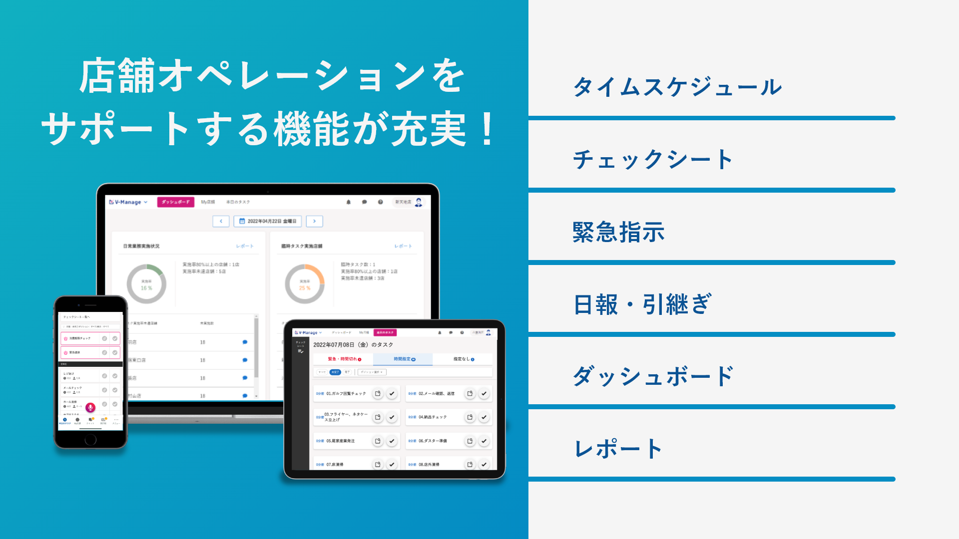 今回、新たな「V-Manage」というサービスは店舗での準備作業などが可視化でき、店舗にいるスタッフ・店舗に居ないマネージャーにとってWinWinのサービスと感じました。