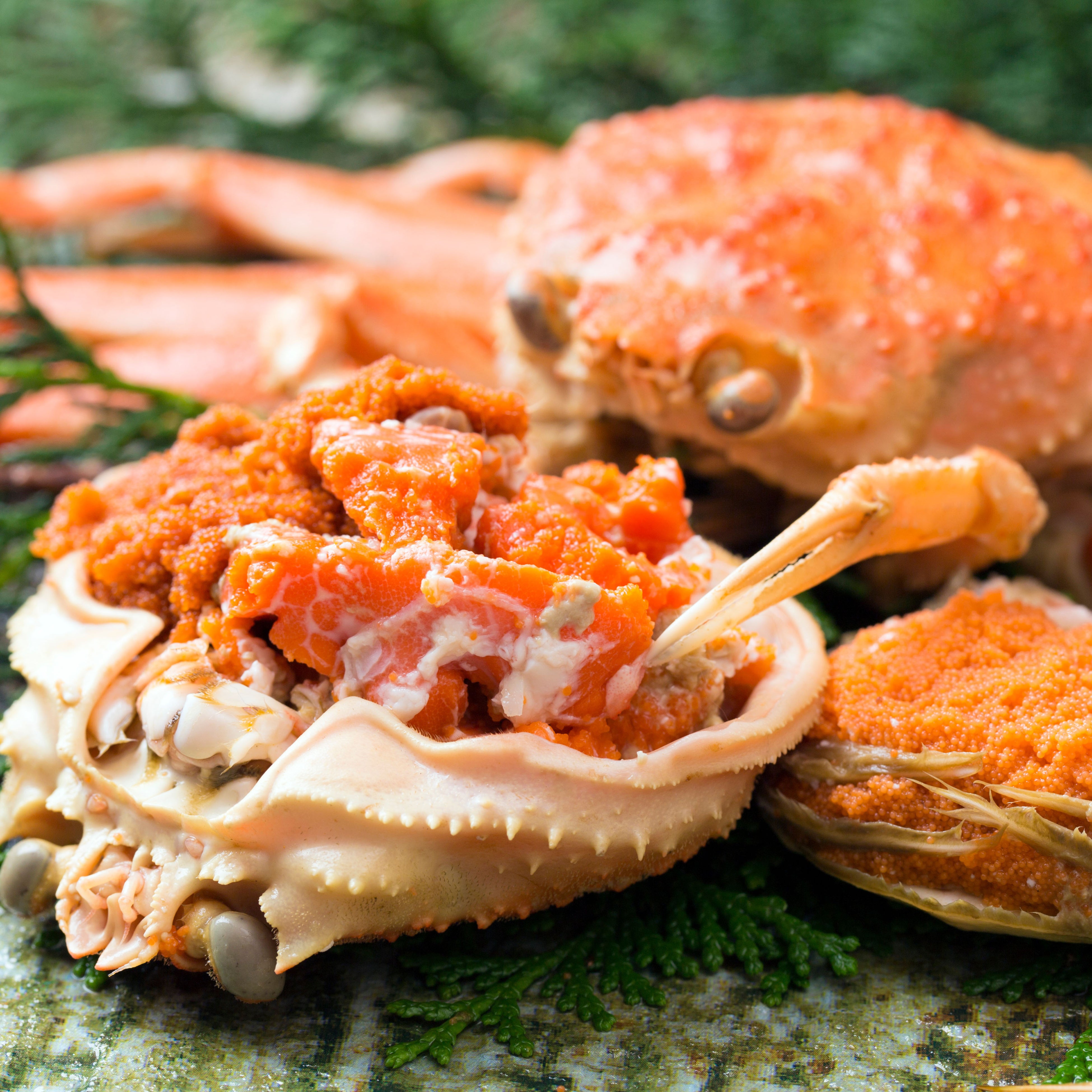 ・旬のズワイガニ姿造り ・炙り寿司 ・玉子 ・トロたく巻き ・お椀 |