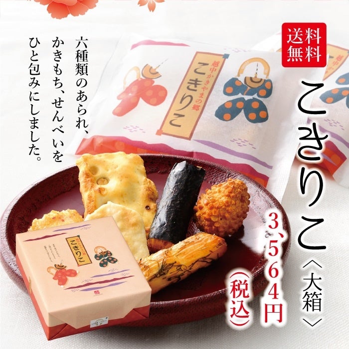 人気の「しろえび紀行」や季節限定の「チョコっとあられ」などが入っており、ご自宅用でも楽しめます。