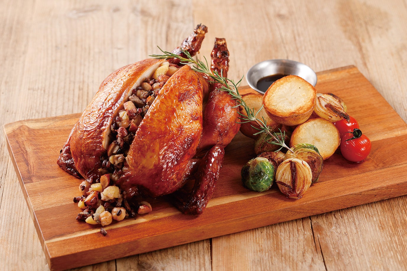 クリスマスローストチキン~黒米と栗、ワイルドライスの詰め物~