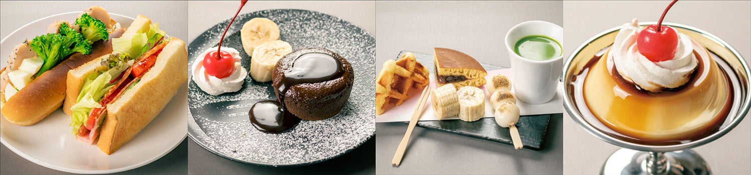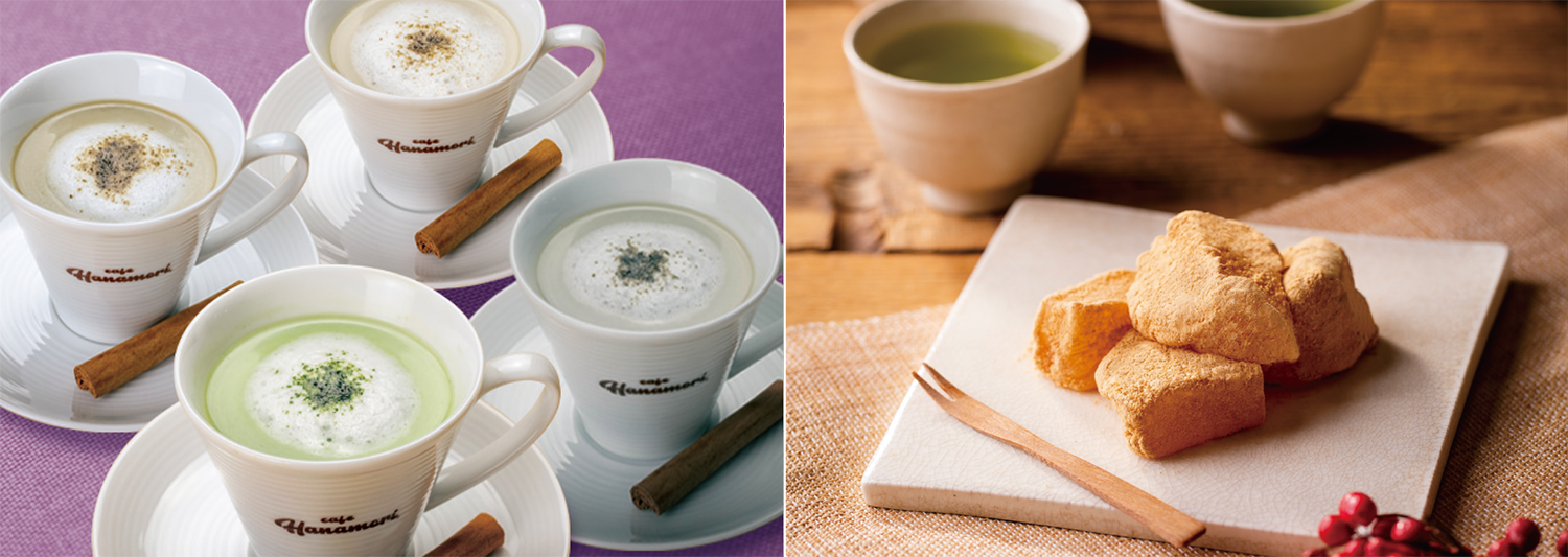 Hanamoriおなじみの名物「わらび餅シリーズ」をはじめ、色とりどりの美味しいデザートが、新たに仲間入りしました。優雅なコーヒータイムをお過ごしください。