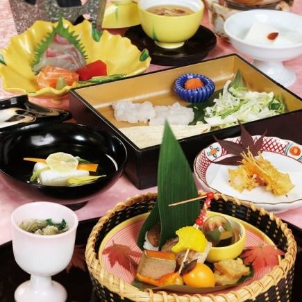 前菜盆 /上吸物 /上造り /国産牛しゃぶしゃぶ小鍋 /茶碗蒸し /焼物 /天ぷら /季節釜飯 /留椀 /デザート