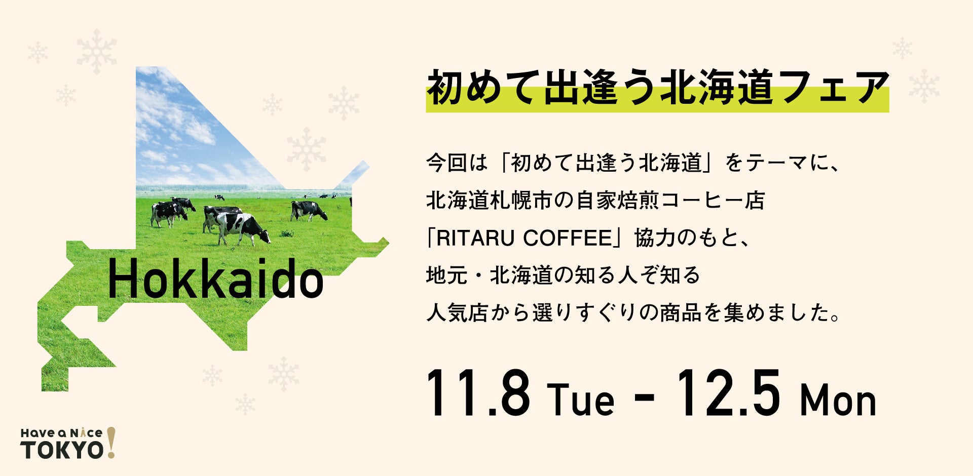 good mornings(グッドモーニングス)株式会社(本社:東京都中央区/代表取締役 水代 優)と三菱地所プロパティマネジメント株式会社(本社:東京都千代田区/取締役社長 川端 良三)が運営する「Have a Nice TOKYO!」SHOP ZONE(所在地:東京都千代田区丸の内2-5-2三菱ビル1階)にて、11/8(火)~12/5(月)までの期間、北海道フェアを開催します。今回は「初めて出逢う北海道」をテーマに、北海道札幌市の自家焙煎コーヒー店「RITARU COFFEE」協力のもと、地元・北海道の知る人ぞ知る人気店から選りすぐりの商品を集めました。新しい北海道の魅力を、ぜひ丸の内でご堪能ください。