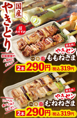 「やきセンももねぎま」「やきセンむねねぎま」。
