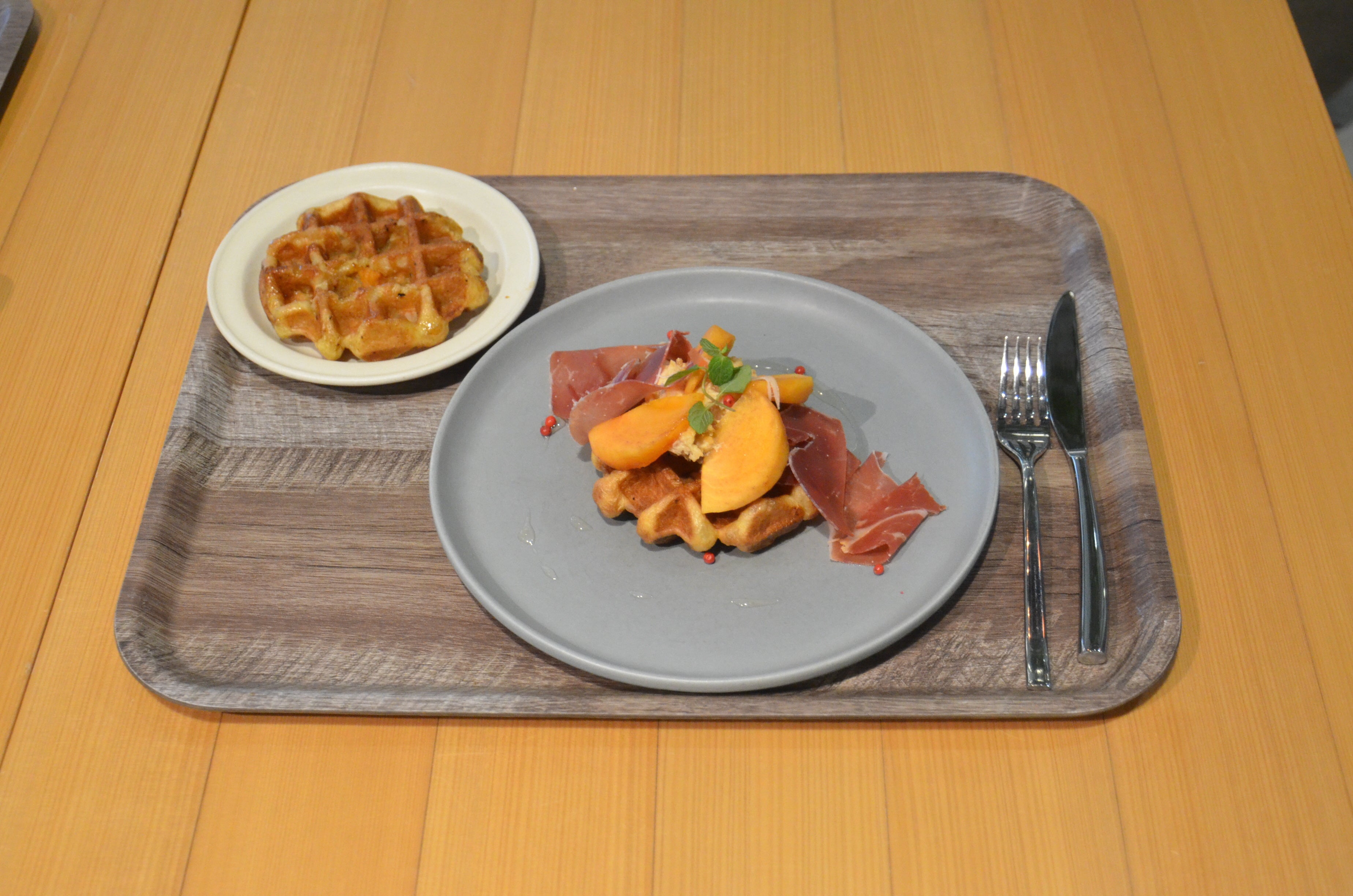 ◇次郎柿とクリームチーズと生ハムのワッフル 〜ベル・ファーム鈴木さんの育てた次郎柿WASHAワッフル〜