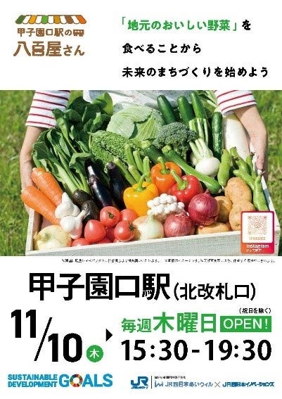 JR西日本グループの障がい者雇用を推進する特例子会社である株式会社JR西日本あいウィル(兵庫県尼崎市、取締役社長:三輪 正稔)と、JR西日本グループのオープンイノベーションを推進する株式会社JR西日本イノベーションズ(大阪市北区、代表取締役社長:奥野 誠)は、共同で「地産地消」「安心・おいしい」と「障がい者活躍」「農福連携」をキーワードに関西圏近郊の新鮮野菜を中心に取り揃える「○○駅の八百屋さん」を展開しておりますが、ご好評につき「さくら夙川駅の八百屋さん」の営業継続と、2022年5月の営業実施時にご好評をいただきました「甲子園口駅の八百屋さん」の営業を再開致します。
