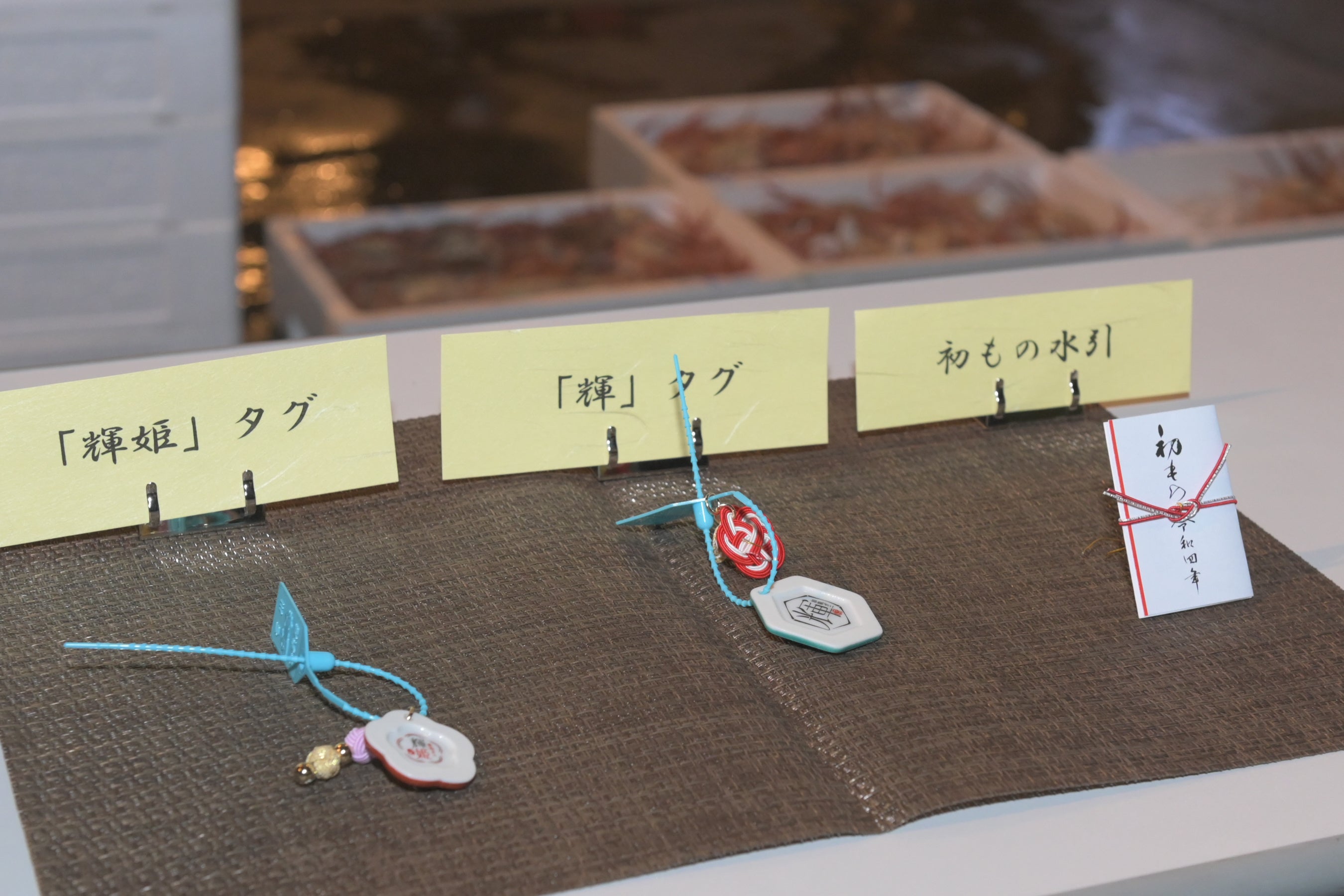 昨年の「蟹-1(カニワン)グランプリ」時に、史上最高額の500万円の値がつき話題となった加能ガニの最高級ブランド「輝」の他、今年9月に新たに発表した雌のズワイガニ(香箱ガニ)の最高級ブランド「輝姫」の初セリを実施。 「輝」は石川県漁協加賀支所にて1尾認定され、 「輝姫」は石川県漁協かなざわ総合市場、加賀支所にて計20尾認定され華々しい初セリデビューとなりました。今年は「輝姫」「輝」の2大ブランドガニが現れました。当日は昨年話題となったこともあり、多くのメディアも両市場に訪れ、初セリに注目していました。