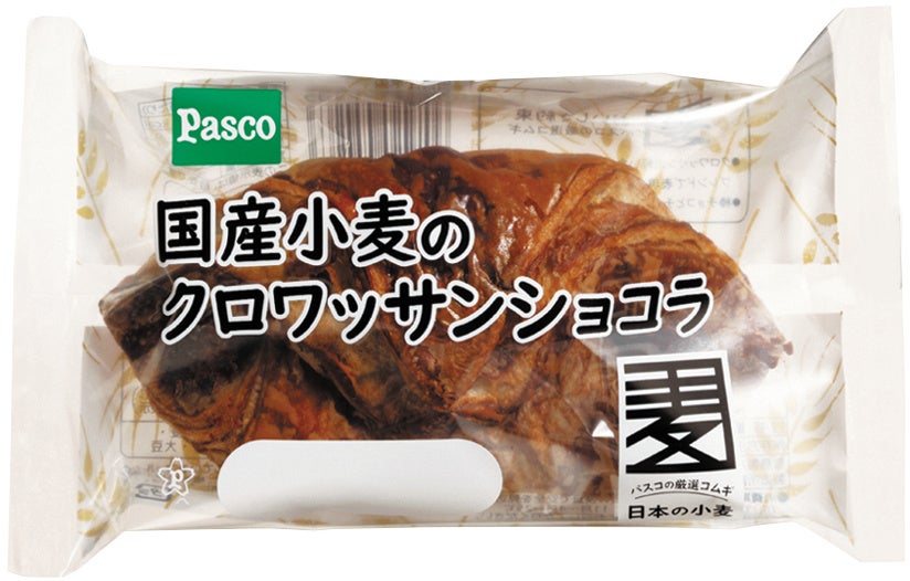 チョコレートクリームとバター入りマーガリンを折り込み、棒チョコを1本巻き込んだ国産小麦のクロワッサンです。
