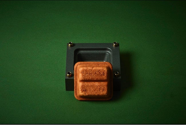 大きめのサイズのため、「CHEESE WONDER」のWをモチーフにして、クッキーを半分にしやすいように割れ目を入れました。見るだけでも楽しめる、見たことのない新しい形に仕上げています。