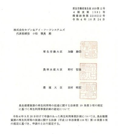 株式会社セブン&アイ・フードシステムズ(本社:東京都千代田区、代表取締役:小松 雅美)は、運営するデニーズで実施しているコーヒー豆かすの食品循環スキームが、2022年10月24日付で、「食品循環資源の再生利用等の促進に関する法律(食品リサイクル法)」の規定に基づき、再生利用事業計画(食品リサイクルループ)として、厚生労働大臣、農林水産大臣、環境大臣より認定を受けました。コーヒー豆かすに特化した食品リサイクルループの認定はレストラン業態としては初めてのこととなります。