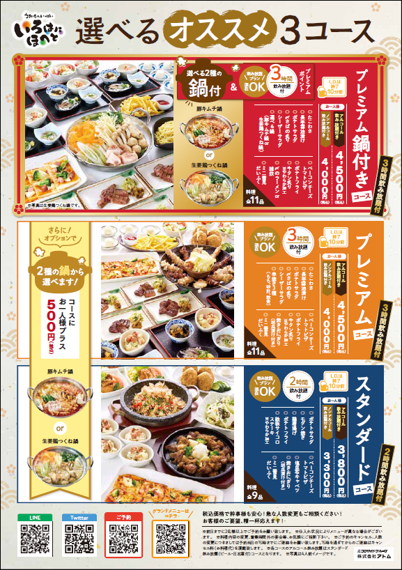 →こちらの2コース、選べる鍋をお一人様+500円でつけることが可能です。
